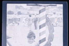 [Niña pequeña sentada en imitación de ancla en balneario] [fotografía]. [Cartagena : entre 1940 y 1950]. 1 fotografía : negativo sobre papel ; 9 x 7 cm .