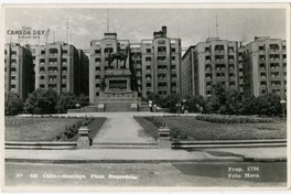 En extremo inferior de la fotografía impreso se lee: No 650 Chile-Santiago, Plaza Baquedano. Prop. 2796 Foto Mora.