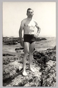 [Hombre en roquerío de balneario] [fotografía] / [Fotografía de Enrique Rojas]. Pichilemu : 1964. 1 fotografía : monocromo, gelatina sobre papel fibra ; 14 x 9 cm. .