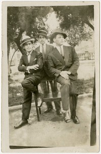 [Hombres la Plaza Colón de Antofagasta] [fotografía]. Antofagasta : 1928. 1 fotografía : monocromo, gelatina sobre papel fibra ; 14 x 9 cm. .