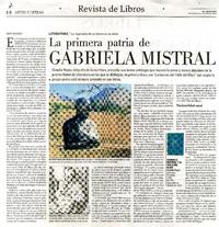 La primera patria de Gabriela Mistral [artículo] / Roger Velázquez. El Mercurio (Diario : Santiago, Chile)-- feb. 10, 2019, p. E8 (suplemento "Artes y Letras""Revista de Libros") 1 página : ilustración en color. .