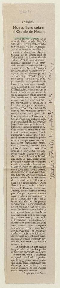 Nuevo libro sobre el Conde de Maule [artículo] / Sergio Martínez Baeza. Las Últimas Noticias (Diario : Santiago, Chile)-- nov. 4, 1998, p. 15 .
