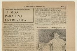 Tiempo para una entrevista [artículo] / A.B. El Siglo (Diario : Santiago, Chile)-- feb. 19, 1967, p. 17. retr. .