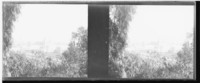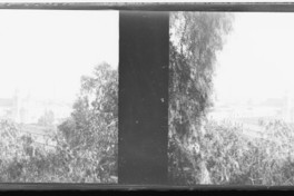 Monocromas estereoscópicas en que se inmortaliza el terreno del convento de las monjas Claras, arbustos en primer plano, a lo lejos se ven edificaciones.