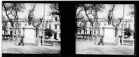 Monocromas estereoscópicas en que se inmortaliza la estatua de don José Miguel Carrera que se observa en la plaza y bandejón central Alameda.