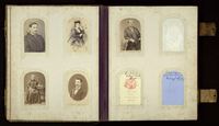 [Álbum de retratos familiares] : [fotografía]. Chile : [Editor no identificado] , 1870. 1 álbum (75 fotografías) : fotografías monocromas, papel a la albúmina, 14 hojas de cartón ; 29 x 34 x 2 cm. .