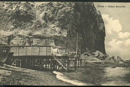 Arica-Baños Maravitto [fotografía] / A. Morice, Editor. Arica : A. Morice, Editor, [Entre 1900 y 1910]. 1 tarjeta postal : fotografía, monocromo, gelatina sobre cartulina ; 14 x 9 cm. .