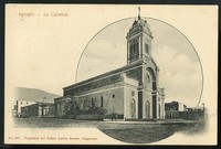 Iquique - La Catedral [fotografía] / Carlos Brandt. Iquique : Carlos Brandt , [Entre 1900 y 1909]. 1 tarjeta postal : colotipo, fotomecánico monocromo sobre cartulina, 11 x 7,5 cm. .