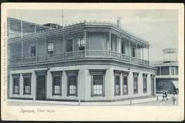 Iquique - Club Inglés [fotografía] / Carlos Brandt Iquique : Carlos Brandt , [Entre 1900 y 1909]. 1 tarjeta postal : colotipo, fotomecánico monocromo sobre cartulina ; 11 x 7,5 cm. .