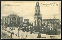 Saludos de Iquique : [Plaza Prat] [fotografía]. Iquique : [Editor no identificado] , 1904. 1 tarjeta postal : colotipo, fotomecánico monocromo sobre cartulina, 13,8 x 9 cm. .