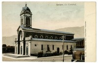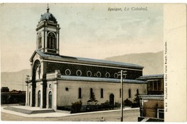 Iquique, La Catedral [fotografía] / Carlos Brandt. Iquique : Carlos Brandt, [Entre 1900 y 1909]. 1 tarjeta postal : colotipo, fotomecánico policromo sobre papel ; 12 x 8,8 cm. .