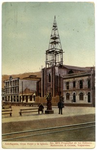 Antofagasta, Gran Hotel y la Iglesia [fotografía] Mattensohn & Grimm.