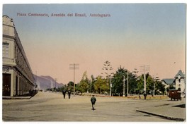 Plaza Centenario, Avenida del Brasil, Antofagasta : [A un costado, el llamado Edificio Centenario, de la Familia Garafulic] [fotografía] / Lemare & Co. Antofagasta : Lemare & Co. , [ca. 1927]. 1 tarjeta postal : colotipo, fotomecánico policromo sobre papel ; 13,8 x 8,7 cm. .