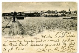 Dedicatoria manuscrita en el anverso; "Caldera, July 24/07: No this is not another Manhattan beach, just a small port on the West Coast. Suppose You will be glad to get home. C.A.M."; "read 27th birthday card from you today on thousand thanks".
