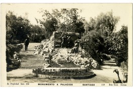 [Monumento a Palacios Santiago] : [Monumento a la Raza Chilena, con placa conmemorativa de Nicolás Palacios] [fotografía] / Foto Cood. Santiago: Foto Cood , [Entre 1926 y 1938]. 1 tarjeta postal : fotografía, monocromo sobre papel ; 14 x 9 cm. .
