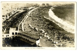 Balneario de La Herradura : [Vista de la costanera y la playa del concurrido balneario; Veraneantes y automóviles] [fotografía]. [Coquimbo : Editor no identificado , Entre 1925 y 1935]. 1 tarjeta postal : fotografía, monocromo gelatina sobre papel ; 14 X 9 cm. .