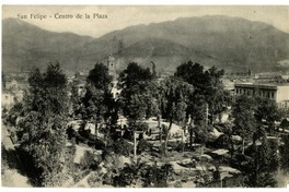 San Felipe -Centro de la Plaza [fotografía] / J. M. Sepúlveda V. San Felipe : J. M. Sepúlveda V., [entre 1912 y 1922]. 1 tarjeta postal : colotipo, fotomecánico monocromo sobre papel ; 14 x 7 cm. .