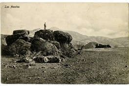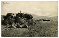 Las Mesetas : [Hombre posa sobre una gran formación rocosa, en el valle de Jahuel] [fotografía] / Balneario Jahuel , San Felipe (Chile) San Felipe : Balneario Jahuel , San Felipe (Chile), 1944. 1 tarjeta postal : colotipo, fotomecánico monocromo sobre papel ; 14 x 9 cm. .