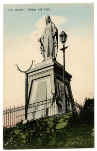 Materias: Tarjetas postales - Valle de Aconcagua (Chile) - Villa Santa Rosa de Los Andes (Chile) - Escultura religiosa - Cerro Quicalcura (Los Andes, Chile) - Monumento a la Virgen María (Los Andes, Chile) - Historia - Fotografías - Iglesia Católica - Los Andes (Chile) - Virgen María