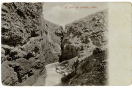 El Salto del Soldado, Chile : [Paso del río Aconcagua por las paredes rocosas] [fotografía] / Valparaíso : Eggers & Cía. , [Entre 1910 y 1920]. 1 tarjeta postal : colotipo, fotomecánico monocromo sobre papel ; 13,7 x 9,2 cm. .