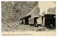 Refugio contra la nieve - Ferro-carril Trasandino, Chile [fotografía] / J. Allan. Valparaíso : J. Allan , [entre 1910 y 1920]. 1 tarjeta postal : colotipo, fotomecánico monocromo sobre papel ; 13,8 x 9 cm. .