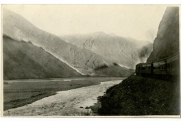 Cordillera de los Andes, Uspallata : [Ferrocarril Trasandino en la ruta del Valle de Uspallata] [fotografía]. Mendoza : Col. Fajardo , [Entre 1915 y 1925]. 1 tarjeta postal : fotografía, monocromo gelatina sobre papel ; 13,5 x 8,5 cm. .