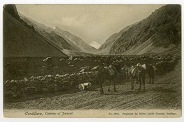 Cordillera, Camino al Juncal [fotografía] / Adolfo Conrads. Santiago : Adolfo Conrads , [Entre 1907 y 1915]. 1 tarjeta postal : colotipo, fotomecánico monocromosobre papel ; 13,7 x 8,2 cm. .