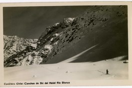 Cordillera (Chile) Canchas de Ski del Hotel Rio Blanco [fotografía]. Chile : [Editor no identificado , 194u]. 1 fotografía : monocromo, gelatina sobre papel ; 13 x 8 cm. .