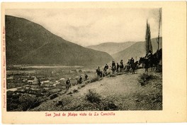 San José de Maipo visto de La Canchilla [fotografía] / Luciano Magnère. San José de Maipo : Luciano Magnère , [Entre 1900 y 1910]. 1 tarjeta postal : colotipo, fotomecánico monocromo, gelatina sobre papel ; 11,5 x 7,5 cm. .