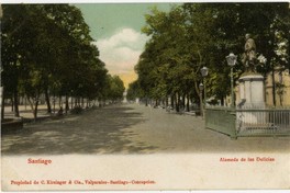 Santiago, Alameda de las Delicias [fotografía] / C. kirsinger & Cía. Santiago : C. kirsinger & Cía. , [entre 1901 y 1910]. 1 tarjeta postal : colotipo, fotomecánico policromo sobre papel ; 13,8 x 7,3 cm. .