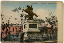 Monumento a O'Higgins. Santiago. Chile. [fotografía] / J. M. Sepúlveda V. Santiago : J. M. Sepúlveda V. , [entre 1912 y 1916]. 1 colotipo : fotomecánico policromo sobre papel ; 12,7 x 9,2 cm. .