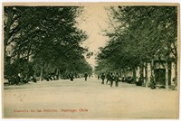 Alameda de las Delicias, Santiago. Chile [fotografía]. Santiago : [Editor no identificado , Entre 1900 y 1910]. 1 tarjeta postal : huecograbado, fotomecánico monocromo sobre papel ; 13,7 x 8,7 cm. .