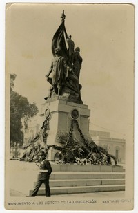 Monumento a los Héroes de la Concepción Santiago Chile [fotografía]. Santiago : [Editor no identificado , Entre 1925 y 1935]. 1 tarjeta postal : fotografía, monocromo, gelatina sobre papel ; 7,8 x 12,8 cm. .