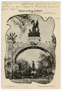 Materias: Homenajes - Tarjetas postales - Edificios, estructuras, etc - Icaza R., Carlos - Crucero Almirante Barroso (Brasil) - Historia - Fotografías - Santiago (Chile) - Brasil - Fotografía - Monumentos - Velasco, Marco A.