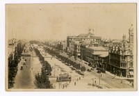 532001.-Santiago-Avenida de las Delicias [Panorámica: Bandejón central; Vereda Norte: Palacio Undurraga, a su derecha, la Casa Haviland, el edificio del Club de la Unión, esquina calle Bandera, entre otras residencias; automóviles, tranvía y carruajes] [fotografía] / Imp. Turismo. Santiago : Imp. Turismo , [193u]. 1 tarjeta postal : fotografía, monocromo, gelatina sobre papel ; 12,7 x 8,2 cm. .