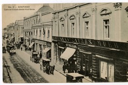 Materias: Calle Estado (Santiago, Chile) - Santiago (Chile : Ciudad) - Librería “La Porteña” (Santiago, Chile) - Calle Huérfanos (Santiago, Chile) - Historia - Fotografías - Tarjetas postales - Comercio minorista - Arquitectura de viviendas