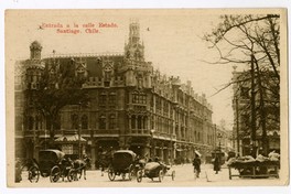 Materias: Santiago (Chile : Ciudad) - Calle Estado (Santiago, Chile) - Avenida Libertador Bernardo O'Higgins (Santiago, Chile) - Bicicletas - Automóviles antiguos y clásicos - Arquitectura de viviendas - Comercio minorista - Tarjetas postales - Residencias - Edificios históricos - Fotografías - Calesas - Carros de sangre - Palacio Undurraga (Santiago, Chile) - Forteza, José - Undurraga García, Luis - Historia