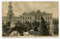 Materias: Plaza de Armas (Santiago, Chile) - Arquitectura colonial - Arquitectura del paisaje - Santiago - Escultores - Tarjetas postales - Edificios históricos - Monumentos - Chile - Fotografías - Rosales Larraín, Francisco Javier - Municipalidad de Santiago (Chile) - Museo Histórico Nacional (Santiago, Chile) - Orsolino, Francisco - Santiago (Chile : Ciudad) - Historia
