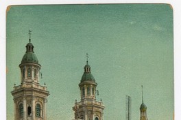Materias: Arquitectura colonial - Catedral de Santiago (Chile) - Arquitectura del paisaje - Santiago - Tarjetas postales - Edificios históricos - Iglesia Católica - Chile - Fotografías - Arquitectura religiosa - Plaza de Armas (Santiago, Chile) - Renner, Guillermo - Bazar Alemán y Juguetería Krauss Hermanos (Santiago, Chile) - Empresa de Correos de Chile - Santiago (Chile : Ciudad) - Historia