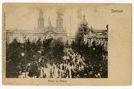 Materias: Historia - Arquitectura religiosa - Fotografías - Chile - Arquitectura - Iglesia Católica - Edificios históricos - Tarjetas postales - Paisajismo - fotografías - Santiago - Arquitectura del paisaje - Plaza de Armas (Santiago, Chile) - Toesca, Joaquin - Brown, Ricardo - Santiago (Chile : Ciudad) - Edificios, estructuras, etc - Empresa de Correos de Chile - Catedral de Santiago (Santiago, Chile) - Bazar Alemán y Juguetería Krauss Hermanos (Santiago, Chile) - Renner, Guillaume - Ferhman, Ramón - Weinreich Kirsinger, Reinaldo - Kirsinger, Carlos