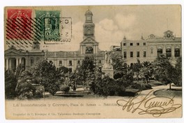 La Intendencia y Correo, Plaza de Armas - Santiago [fotografía] / C. Kirsinger & Co. Santiago : C. Kirsinger & Co. , [1904]. 1 tarjeta postal : colotipo, fotomecánico monocromo sobre cartulina, 14 x 7,5 cm. .