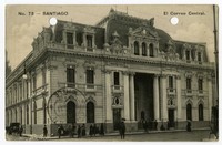 Santiago, Correo Central [fotografía] / Gallardo Hnos. Santiago : Gallardo Hnos , 1911. 1 tarjeta postal : colotipo, fotomecánico monocromo sobre papel ; 14 x 9 cm. .