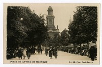 Plaza de Armas de Santiago [fotografía] / Foto Cood Santiago : Foto Cood , [Entre 1927 y 1940]. 1 tarjeta postal : fotografía, monocromo, gelatina sobre papel ; 13 x 7,5 cm. .
