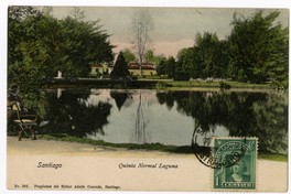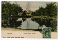 Santiago Quinta Laguna [fotografía] / Adolfo Conrads. Santiago : Adolfo Conrads , [Entre 1907 y 1915]. 1 tarjeta postal : colotipo, fotomecánico policromo sobre papel ; 13,5 x 7,3 cm. .