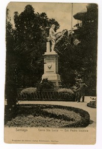 Materias: Escultores - Tarjetas postales - Edificios históricos - Monumentos - Cerro Santa Lucía (Santiago, Chile) - Vicuña Mackenna, Benjamín - Arquitectura - Fotografías - Valdivia, Pedro de - Costoli, Luigi - Pinto Álvarez, Aníbal - Edificios, estructuras, etc - Santiago (Chile : Ciudad) - Decoración y ornamentación - Historia - Arquitectura del paisaje
