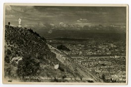 Chile, Santiago.- Visto desde el San Cristóbal [fotografía] / Foto Mora. Santiago : Foto Mora , 1960. 1 tarjeta postal : fotografía, monocromo, gelatina sobre papel ; 13,3 x 8,5 cm. .