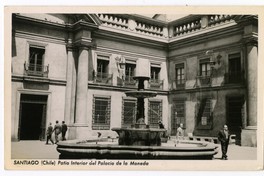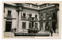 Santiago (Chile) Patio interior de la Moneda [fotografía]. Santiago : [Editor no identificado, Entre 1935 y 1945]. 1 tarjeta postal : fotografía, monocromo, gelatina sobre papel ; 13 x 7,7 cm. .