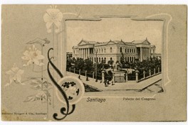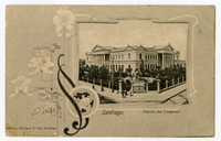 Santiago Palacio del Congreso [fotografía] / Editores Neupert & Cia. Santiago : Editores Neupert & Cia. , [19uu]. 1 tarjeta postal : colotipo, fotomecánico monocromo sobre papel ; 13,8 x 8,8 cm. .