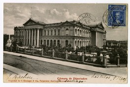 Cámara de Diputados [Antiguo Congreso Nacional] [fotografía] / C. Kirsinger & Cia. Santiago : C. Kirsinger & Cia. , 1907. 1 tarjeta postal : colotipo, fotomecánico monocromo sobre papel ; 13,8 x 8,8 cm. .