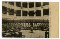 Interior de la Cámara de Diputados. Santiago, Chile : [Antiguo Congreso Nacional] [fotografía] / J. Allan. Santiago : J. Allan. , [Entre 1910 y 1920]. 1 tarjeta postal : colotipo, fotomecánico monocromo sobre papel ; 13,8 x 8,8 cm. .